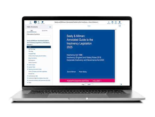 Online access to Sealy & Milman on Westlaw UK's renowned interface can offer a combination of first-class insolvency legislation guidance with a seamless, coherent, and integrated research experience and regular updates online.